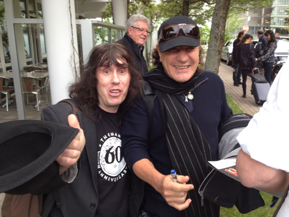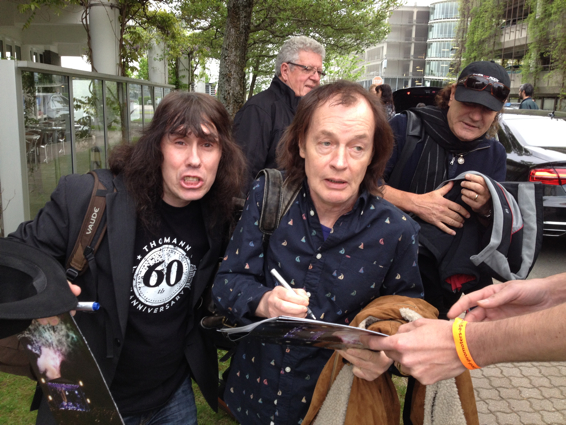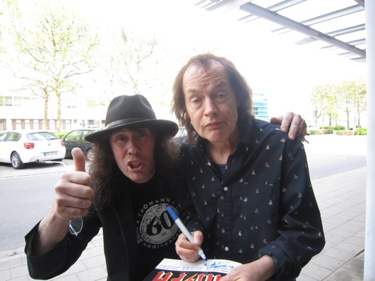 Begegnung mit Angus Young ( Lead-Gitarrist von AC/DC ) Bei einem Treffen am Hotel in München konnte Walter Tomasi